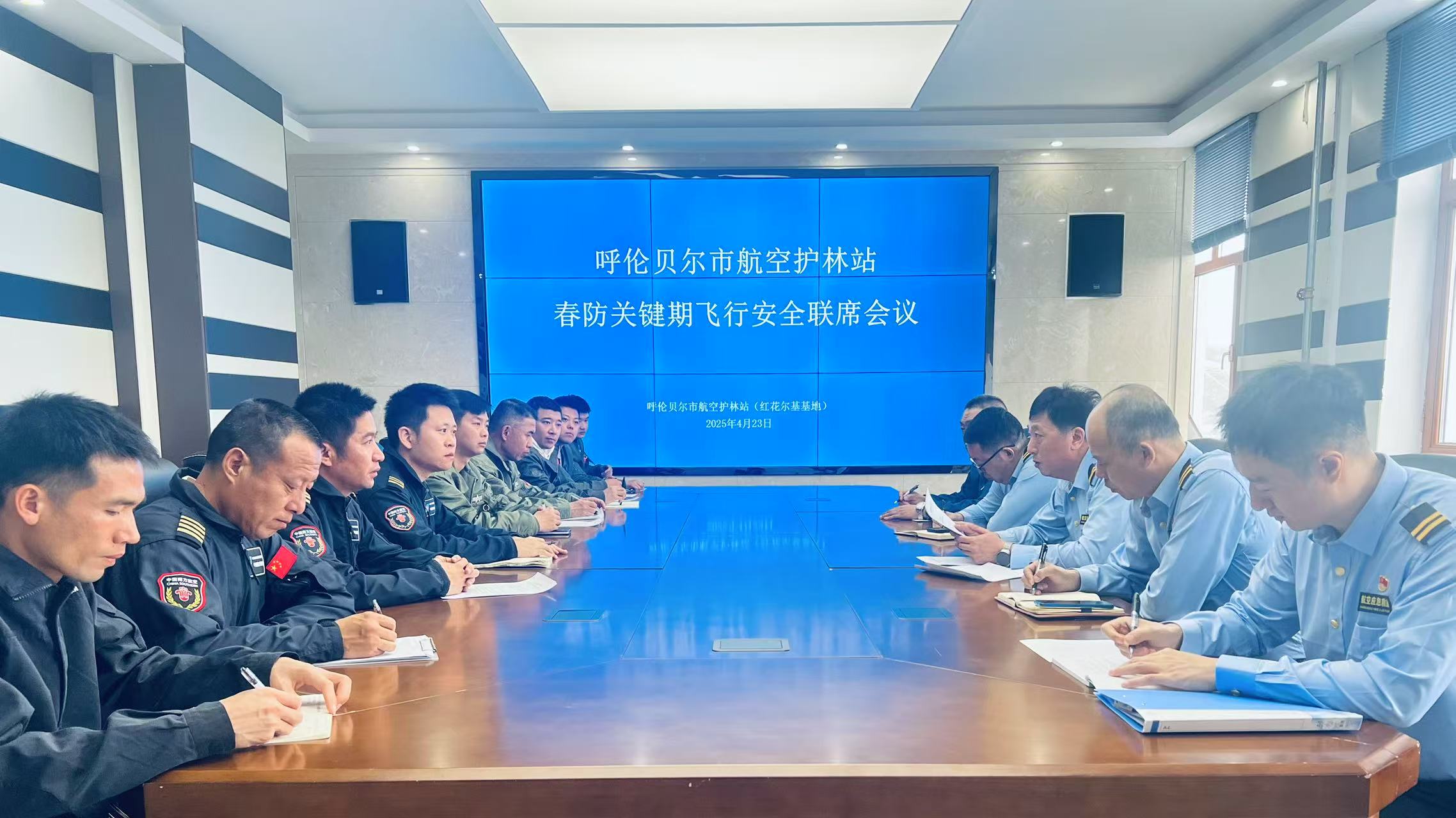 为进一步强化飞行安全责任意识,部署推进春季森林草原防火关键期航空应急救援工作安全有序开展,4月23日,呼伦贝尔市航空护林站红花尔基靠前驻防基地召开春防关键期飞行安全联席会议。航站驻防基地全体职工、机组飞行员及机务保障人员代表参会。